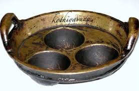 To make these delicious rice cakes, you will need a special vessel called Appa Karal in Thamizh. People from other states refer to this as an appam pan. This vessel is versatile and can be used to make a variety of dishes that are shaped like dumplings. The picture below shows a pan with three indentations. But you can get this with 5 or 7 indentations or even larger. But it must be a heavy piece made of brass or cast iron as it will go into the oven. Though I have never tried it, I suppose you can also use a cup cake tray if you do not have an appa karol readily available.