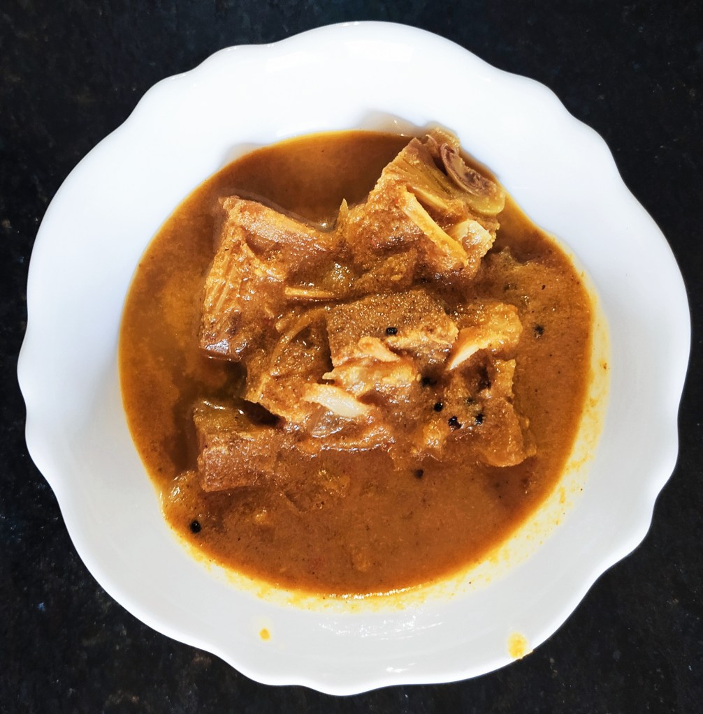 I am quite a fan of jackfruit. But I have only had it cooked as a dry dish. Most often, as a thoran. Sometimes, a North Indian preparation. There are several types of jackfruits. For thoran, the best results are with elongated, tender jackfruits called idi chakka. This variety is not available in North India – so I make do with what is available here. But I do find it in speciality shops for the Malayalee festivals of Vishu and Onam.