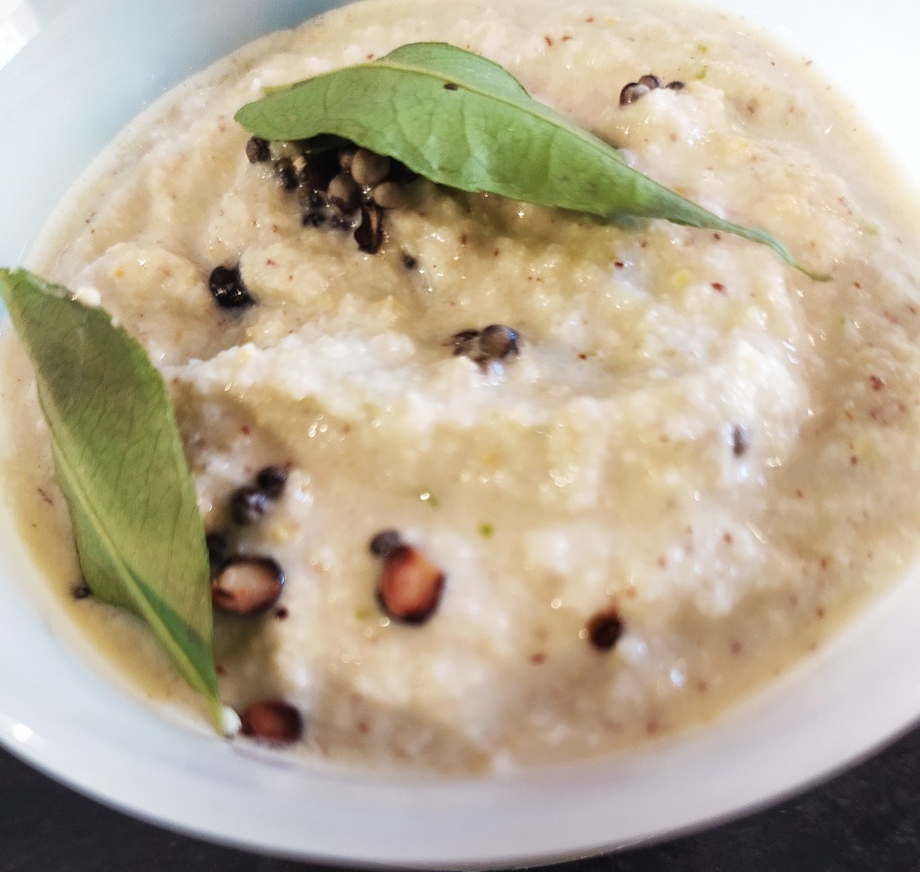 There are innumerable varieties of coconut chutneys. The simplest being just ground coconut with a little tempering. I love coconut chutneys is any form. They are really versatile and pair well with most South Indian breakfast and snacks. I cannot imagine a Mysore Bonda without a coconut chutney. Similarly, a Medhu Vada. So, the coconut chutney is South India’s answer to the tomato sauce used in many parts of the world. Or the green chutney of non-South India.