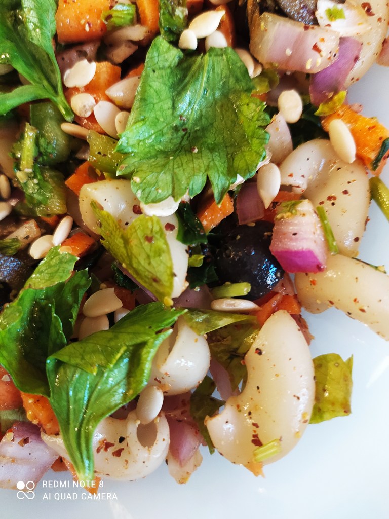 I was never a salad person for most of my life. Somehow, the urge was never upon me. I used to notice several types of salad whenever I dined at buffets at restaurants. Though they all looked attractive, I would normally settle for a few pieces of cucumbers and tomatoes. Just so that I can assuage my guilt. Even after I turned WFPB and the importance of salads was driven into my head, I considered eating a salad more of a chore that had to be done. It is only in the last few months that I have seriously begun exploring salads. What a wide variety there are! And very tasty too. I must admit that I am now a convert and look forward to creating interesting salads. This pasta salad is one such.