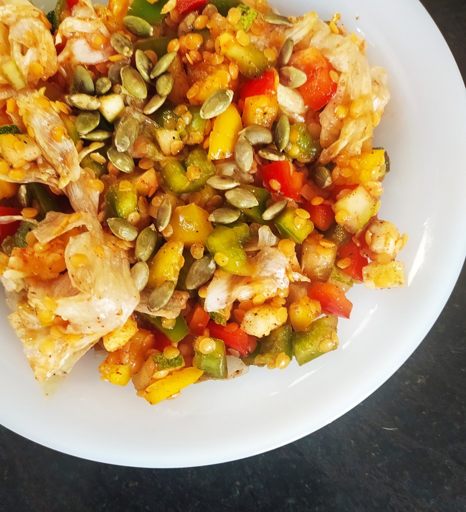 What an interesting name! I customised this recipe from the late Tarla Dalal’s website. Tarla Dalal was India’s most iconic and proliferous food writer. All her recipes were vegetarian, making it easier to customise so that they are WFPB compliant. She christened this ‘Office Salad’ as it was capable of being packed and carried to office. And consumed at room temperature or even cold. It is an easy recipe – indeed most salad recipes are easy. But, needless to say, it tasted wonderful. The recipe contains easily available ingredients – though I had one missing! I had a thoroughly good time preparing and consuming this salad. My cousin had joined me for lunch on the day I prepared this. And he, normally a picky eater, had second helpings. What better tribute can there be?
