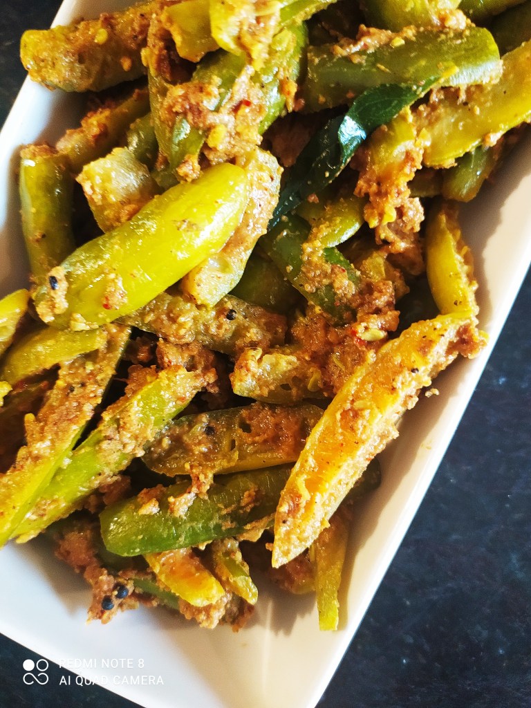I have posted a couple of ivy gourd recipes before. This one is a little different, from the states of Andhra Pradesh/Telengana in the south of India. I seem to have an affinity for Andhra recipes. I do enjoy the bold taste of their dishes. And ivy gourd in a vegetable that is cooked at least once a week in my home. That’s because it is available throughout the year. And no worries about it being organic or not. This is a creeper that grows wild once it is sown. And requires very little care. Normally no pesticides are used in its cultivation since it grows rather wild. This makes it very affordable – I often pick it from my non-organic vegetable supplier at very low cost. But, most important of all, it is an extremely tasty vegetable!
