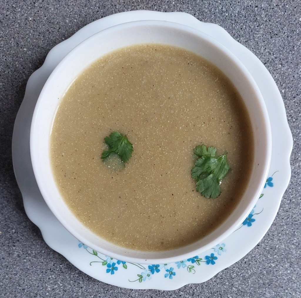 Asparagus in not native to India. I find it in the market often, but priced really high. But I have come to like the taste of asparagus. I therefore buy it every once in a while. It normally goes into a salad with baby carrots. But this time, I was having a rollicking good time experimenting with soups. And therefore decided to try out an asparagus soup – now, I am left with a bunch of baby carrots and wondering what to do with them. Nevertheless, the soup was really worth it. And therefore more reason than ever to buy this expensive vegetable even more often. I must thank feel good foodie for pointing me the way to this wonderful soup.