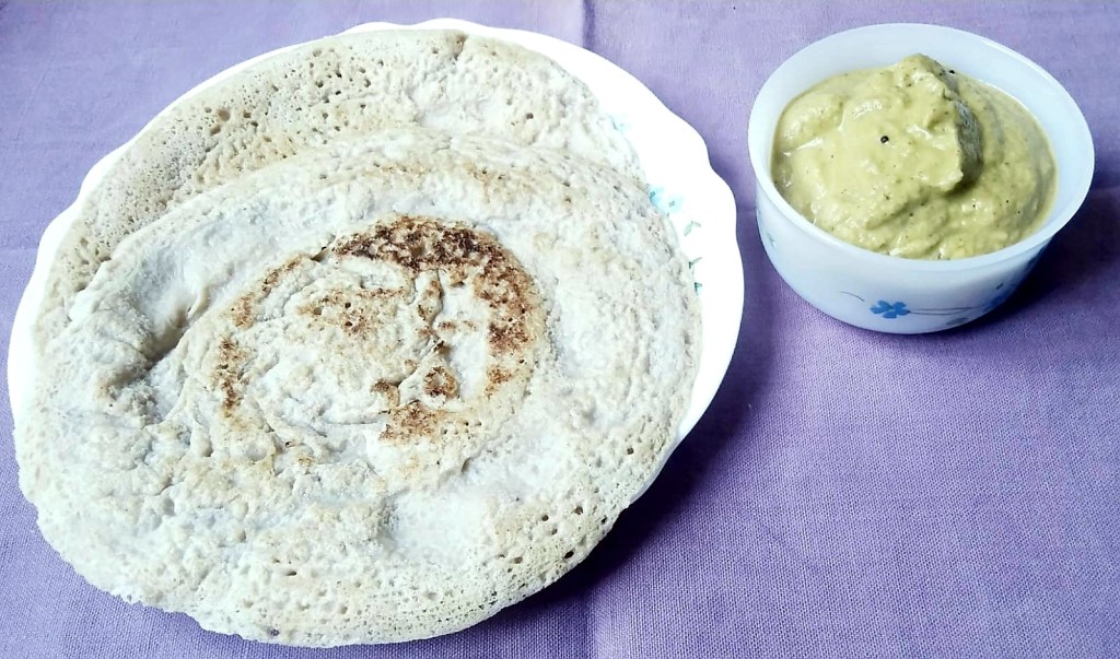 Kal dosai is s soft, spongy dosa. It is thicker compared to the ‘normal’ dosa. Kal dosai is one of the staple breakfast dishes in the south Indian state of Thamizhnadu. I am fond of all kinds of dosai, but had never tried kal dosai. I was a little apprehensive since the traditional method of preparing this dish required parboiled rice and idli rice. Since I do not use any refined or processed ingredients in my cooking, I was wondering how to go about this dish – or perhaps I should just give up on it. But I decided to bash on regardless. The end result was superb – without any of the speciality rice varieties. I used just plain brown rice. I am sure that this will taste even better with red rice.