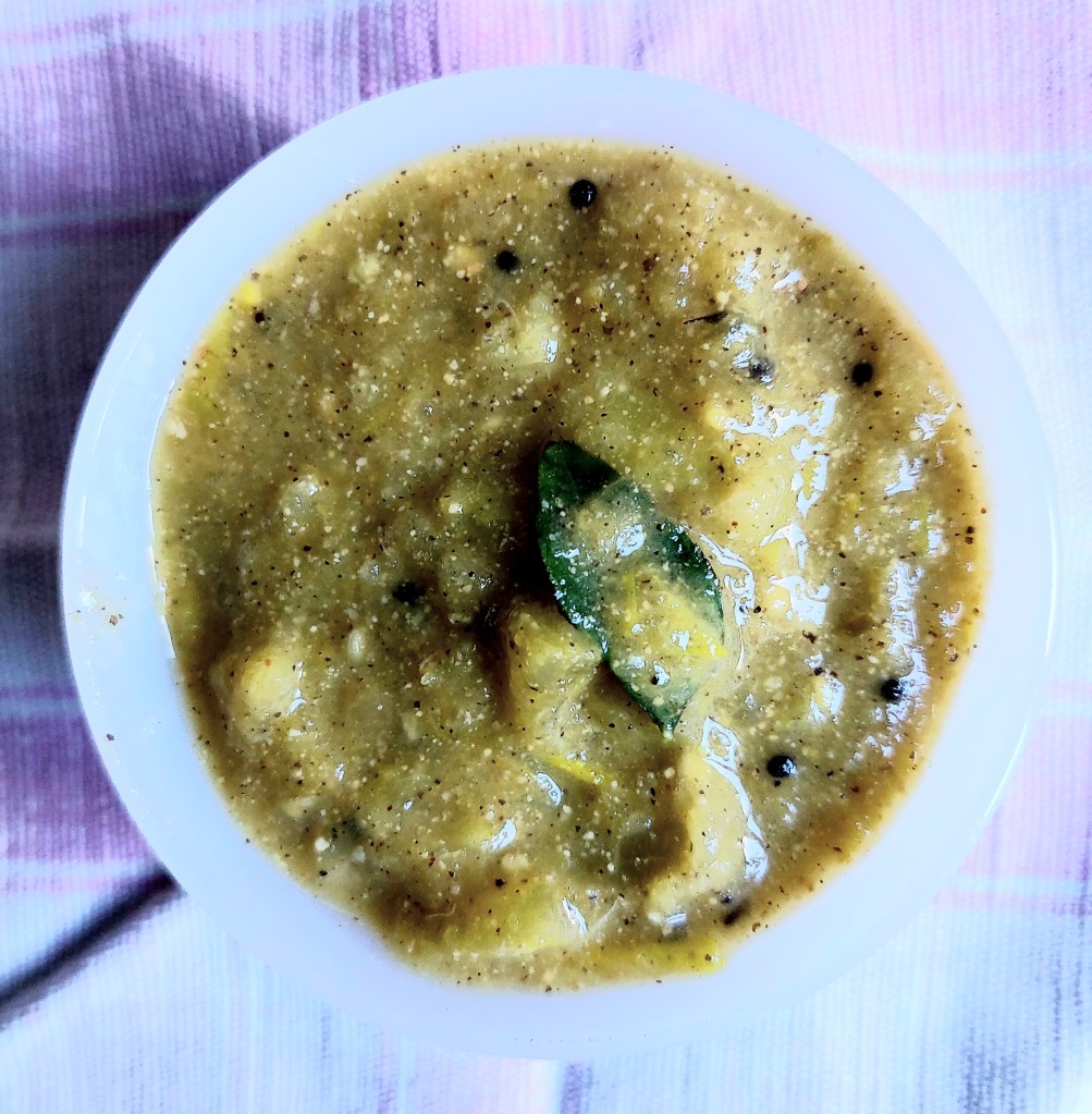 The taste of green tomatoes (unripe tomatoes) is a little different from the red ones. I have often had dishes made with the green variety and have enjoyed them thoroughly. So, I was delighted that the Saturday organic market had some green tomatoes to offer. I wasted no time in lapping them up. And promptly told Hari the recipe. The next morning, my yearning of many years was fulfilled. Why many years? It’s because you do not often see the unripe tomatoes in the markets in this part of the world. Even when I was growing my own tomatoes, I could not enjoy green ones as fruiting was not coordinated. Therefore, I would, at most, get two green tomatoes at a time. Hardly enough to make a decent dish. But enough of my woes. Let me get down to the exciting green tomato chutney.
