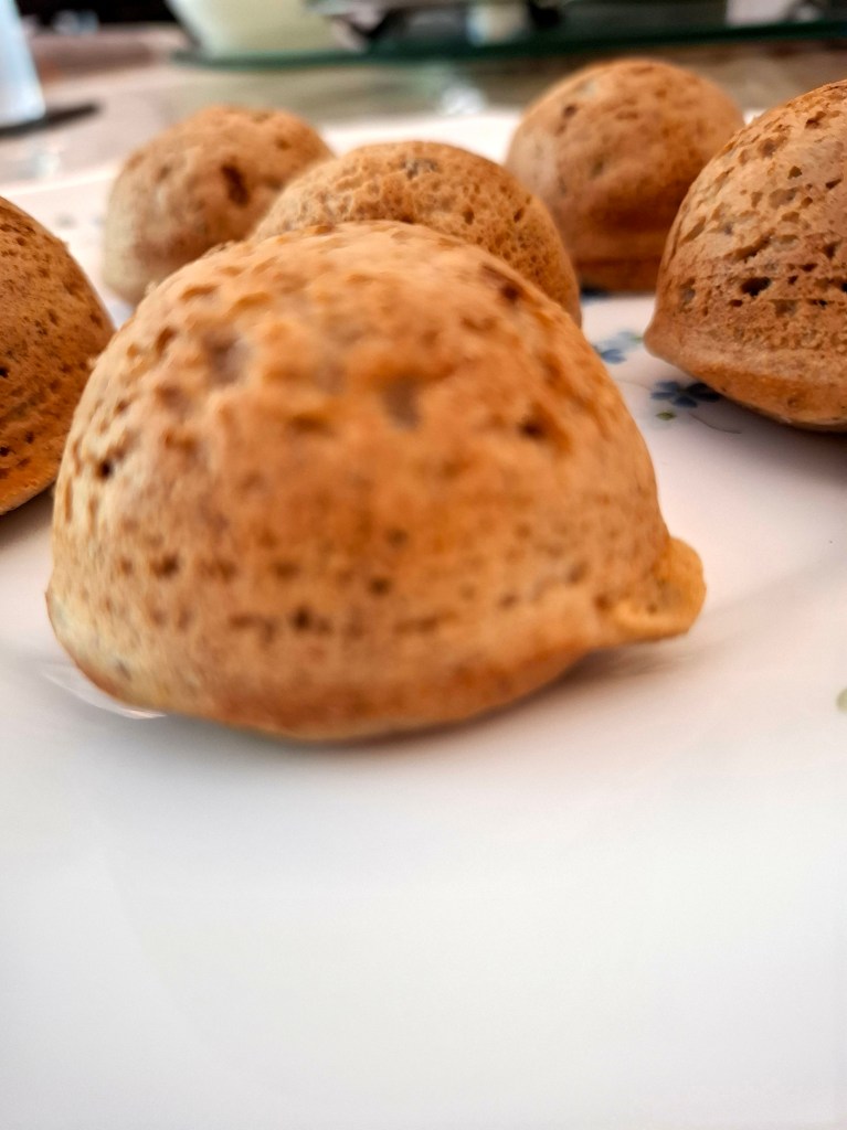 Mor Appam and Kuzhi Paniyaram are close cousins. While idli or dosa batter is used in kuzhi paniyaram, ground rice and yogurt are the main ingredients in mor appam. Both are tasty and bland dishes. Equally delicious. There is also a sweet version called nei appam – meaning ghee dumplings. I have made it with no ghee or grease of any kind. Boy, it was tasty. Nei appams are often made as offerings to the Gods.