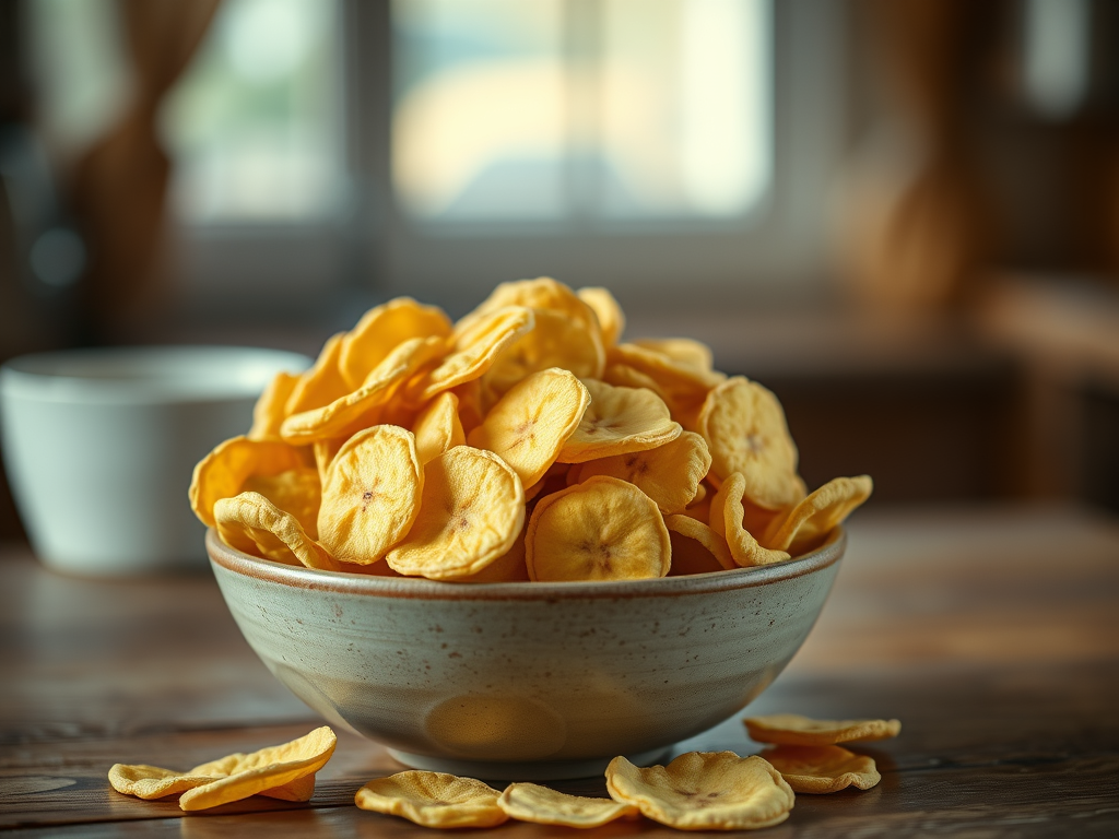 Enjoy your crunchy, oil-free WFPB banana chips as a healthy snack!