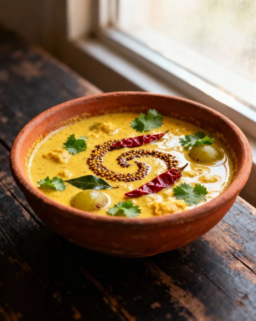 Indian gooseberry (amla) kadhi is a refreshing, seasonal variation of the traditional kadhi, prepared in a whole-food, plant-based (WFPB) way without oil, dairy, or refined ingredients. Originating in regions where amla grows abundantly—especially parts of North and Central India—this kadhi evolved as a cooling yet immunity-boosting dish, valued in traditional home cooking. In WFPB amla kadhi, blended amla provides natural tanginess in place of yogurt, while chickpea flour adds body, plant protein, and satiety. Nutritionally, it is rich in vitamin C, antioxidants, and polyphenols from amla, supporting immunity, skin health, and iron absorption, while also offering fiber, magnesium, and B-vitamins from besan. The absence of oil keeps it low in fat and heart-friendly, making it suitable for therapeutic and everyday diets alike. The spices—such as turmeric, cumin, ginger, and curry leaves—enhance digestion and anti-inflammatory benefits. Though not as widely known as yogurt-based kadhi, amla kadhi is gaining popularity among WFPB and health-conscious communities for its unique flavor, digestive ease, and alignment with traditional Indian wisdom of using seasonal, medicinal foods.